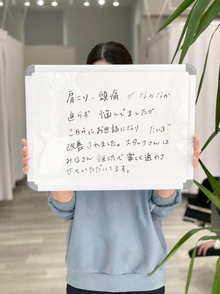 『肩こり、頭痛がなかなか治らず悩んでいましたが、こちらにお世話になりだいぶ改善されました。スタッフさんは皆さん親切で楽しく通わせていただいてます。』
